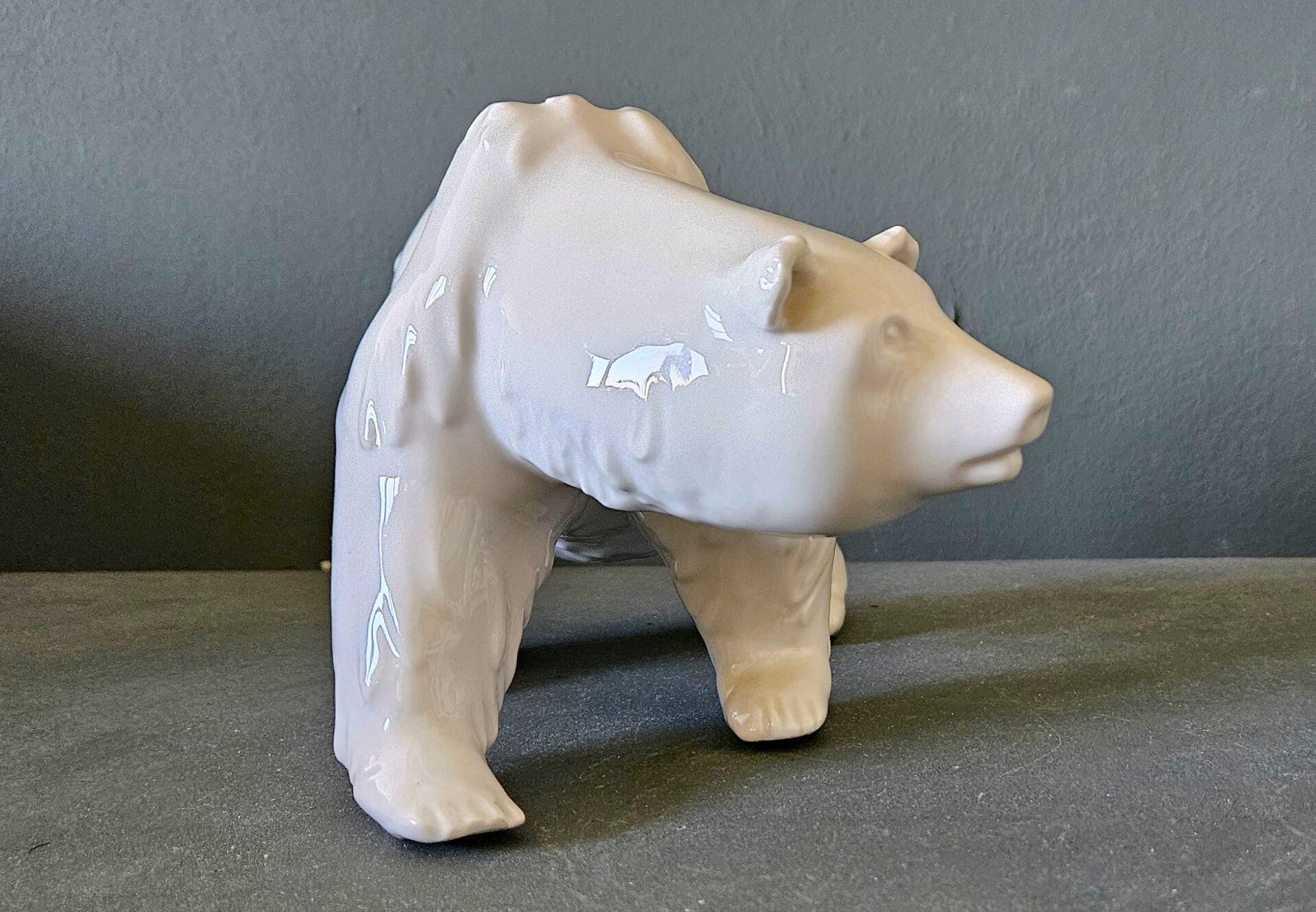 Staatsporseleinfabriek (KPM), Berlijn 2000-2006. Wit porselein, geglazuurd. Blauw sceptermerk onder het glazuur. Een schuurbeweging. Hoogte 14 cm, lengte 25 cm. Ontwerp van Heinrich Ernst Weisser uit 1955.