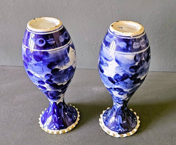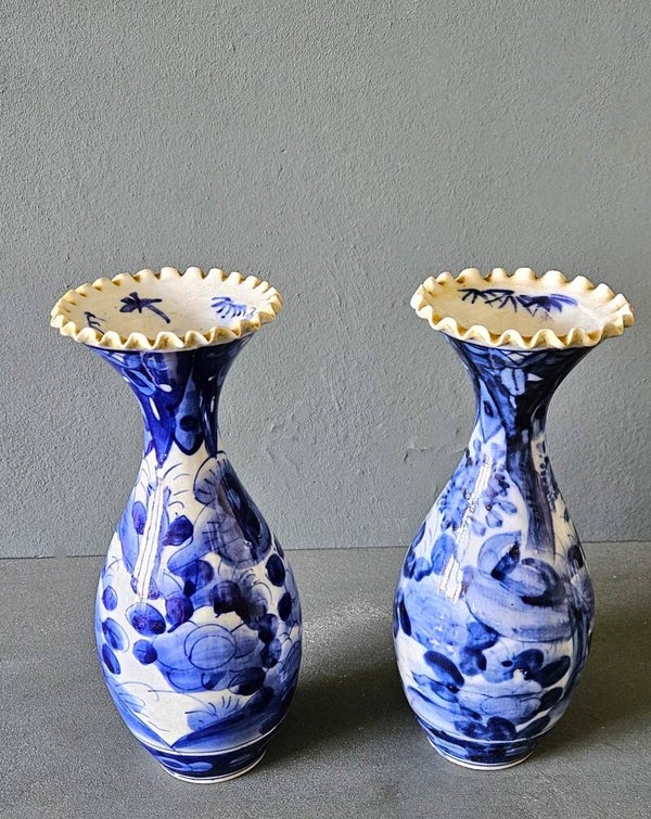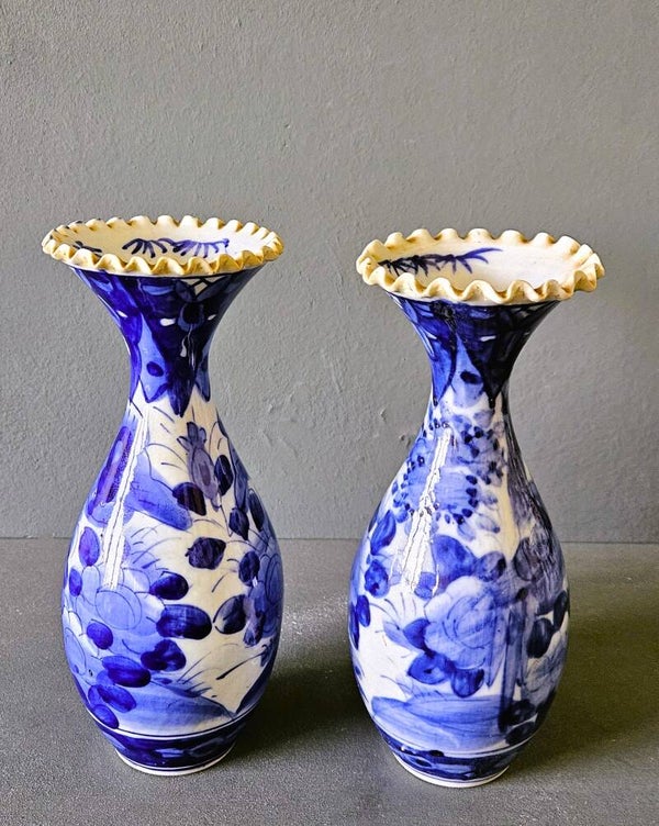 Dit is een prachtig gedetailleerde handbeschilderde Japanse Arita ware porseleinen vaas die dateert uit het einde van de 19e eeuw. De grote en imposante vazen zijn een mooie strakke uitstraling door het aantrekkelijke glazuur en heeft een geweldige vorm met een slanke hals en gekrompen rand. De vaas, die een prachtig rijk koningsblauw en wit. 24 cm hoog ongeveer. In uitsteekende staat