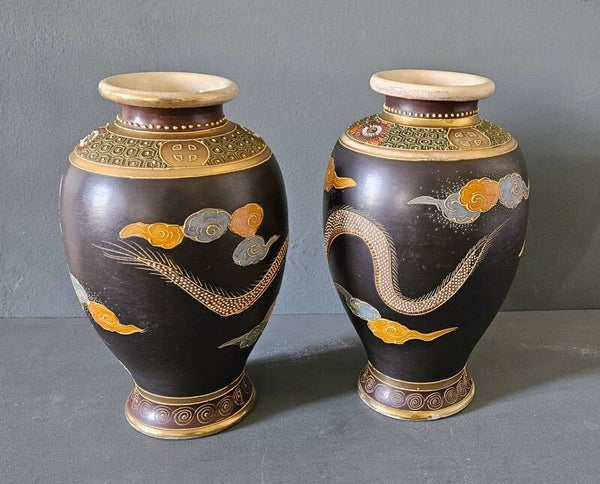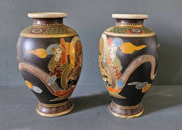 Paar van 2 Japanse Satsuma vazen, handgeschilderde vazen, Zeldzame oud handgeschilderde Japanse Satsuma vazen.Zeer verzamelbare en prachtige stukken Japanse kunst, 32 cm hoogIn goede staat met leeftijd sporen