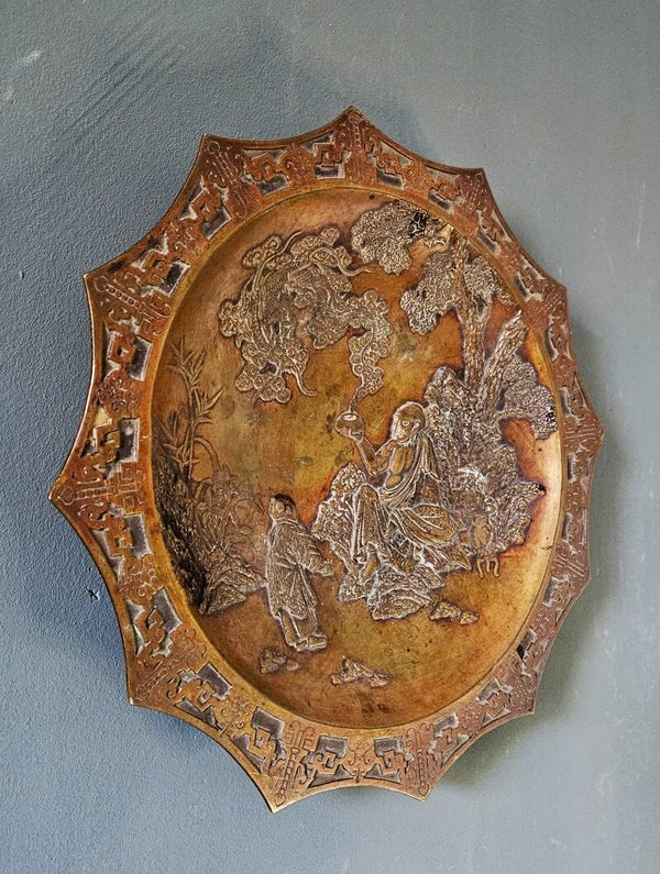 De bronzen schaal is 12-delig en stelt een zetting uit de Aziatische mythologie voor.
