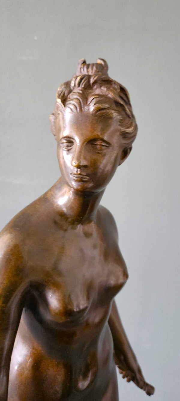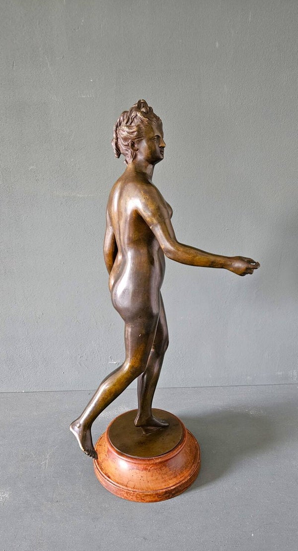 'Diana', bronzen sculptuur op houten basement naar Jean-Antoine Houdon, laat 19eeeuw. 61 cm hoogste, In goede staat (Incompleet )