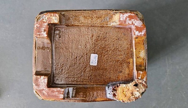 Rechthoekige keramiek dekselbak met hoogglans glazuur, gemaakt in La Borne Frankrijk,
