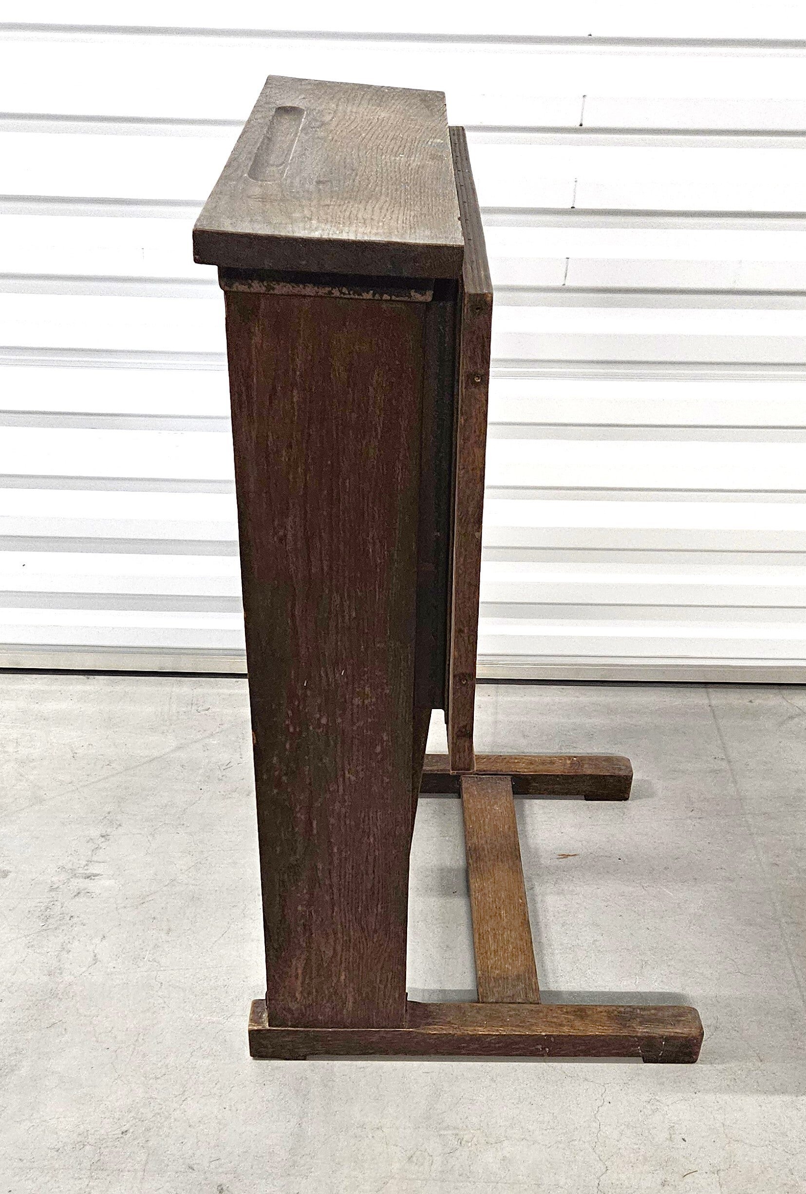 Materiaal: Het is gemaakt van massief eikenhout, wat typerend is voor de duurzame constructie van oudere meubels.