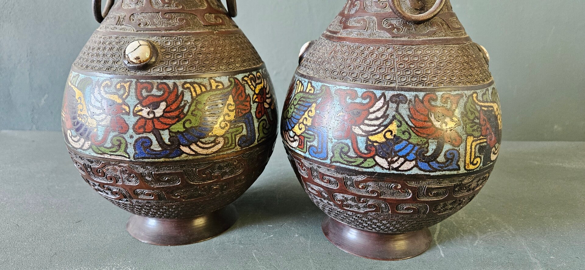Japanse bronzen champlevé en cloisonné emaille vazen