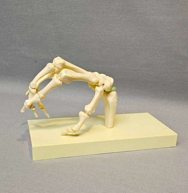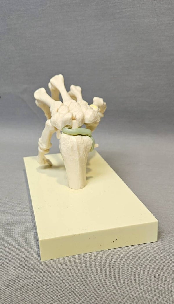 Conditie: In goede vintage staat. Geen breuken in de botstructuur. De gewrichten tonen de anatomie zeer gedetailleerd. (Eventueel toevoegen: lichte ouderdomsverkleuring passend bij de leeftijd).