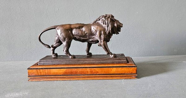 Prachtige bronzen replica van de beroemde "Wandelende Leeuw" door Antoine-Louis Barye, uitgebracht door de gerenommeerde Franklin Mint. Dit beeld is een officiële heruitgave die met veel oog voor detail is vervaardigd naar het originele model uit ca. 1840.